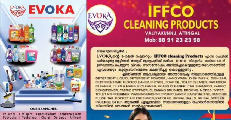 ആറ്റിങ്ങലിൽ ക്ലീനിങ് ഉത്പന്നങ്ങൾക്ക് മാത്രമായി ഒരു ഷോറൂം, ഇഫ്ക്കോ ഷോറൂം ഉദ്ഘാടനം ഒക്ടോബർ 27ന് October 26, 2025 9:44 am