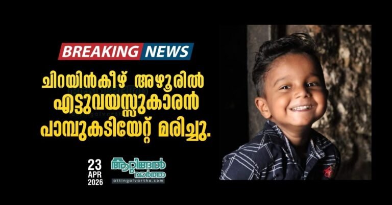 വര്ക്കലയില് വീട്ടമ്മയ്ക്കും പോത്തന്കോട്ട് വിദ്യാര്ത്ഥിനിക്കും പാമ്പുകടിയേറ്റു April 23, 2026 No Comments