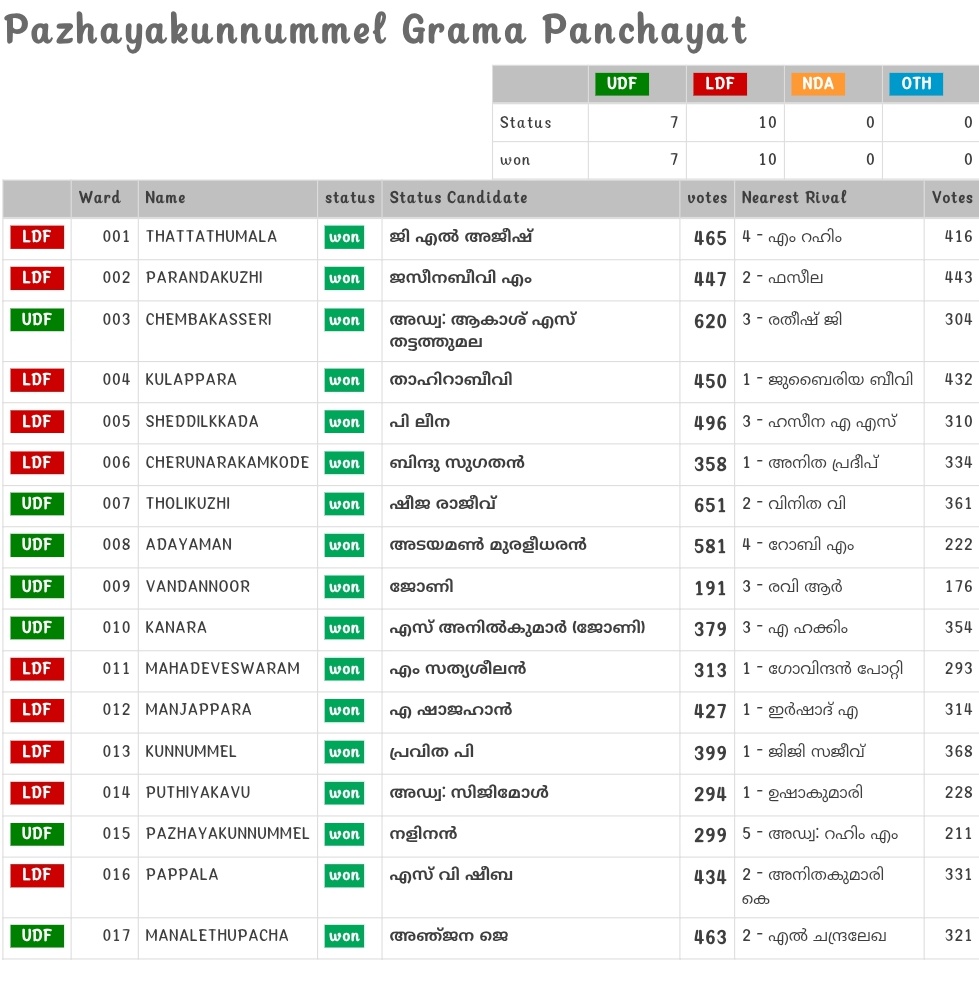 പഴയകുന്നുമ്മേൽ ഗ്രാമപഞ്ചായത്തിൽ എൽഡിഎഫിന് ഭൂരിപക്ഷം