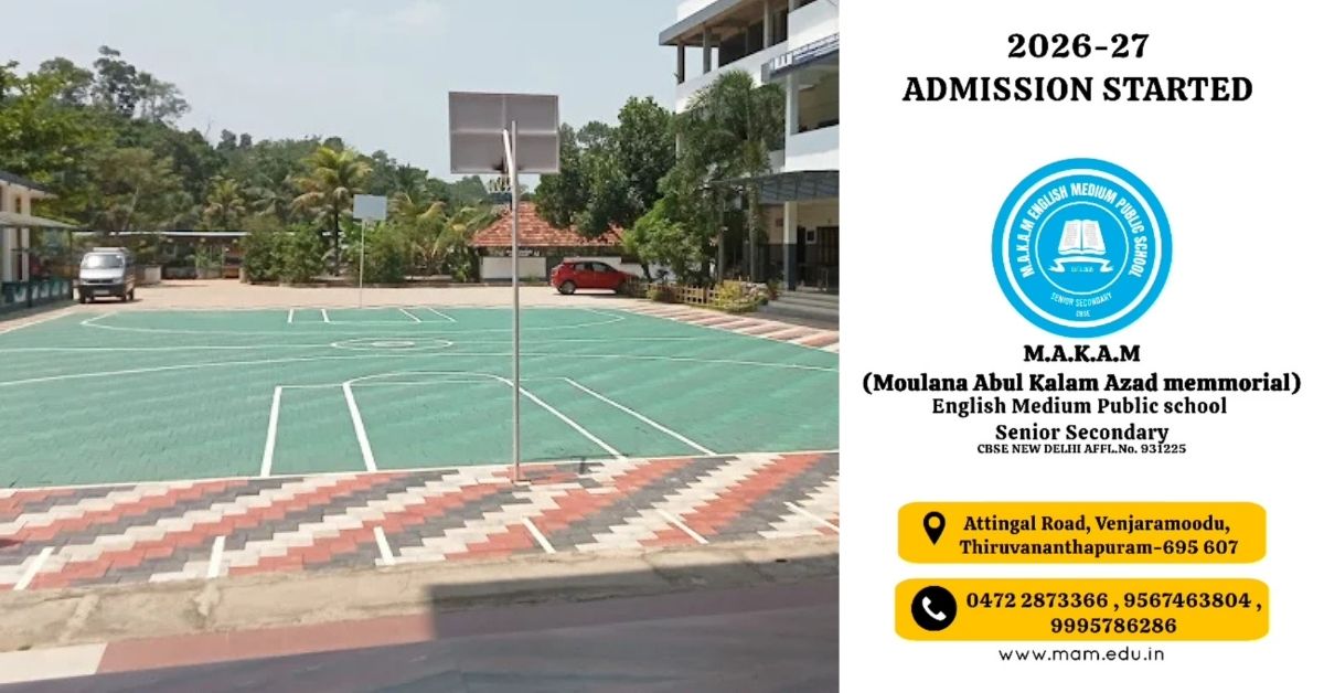 വെഞ്ഞാറമൂട്: കുട്ടികളുടെ സമഗ്ര വളർച്ച ലക്ഷ്യമിട്ട് പ്രവർത്തിക്കുന്ന വെഞ്ഞാറമൂടിലെ മൗലാനാ അബ്ദുൽ കലാം ആസാദ് മെമോറിയാൽ (എം.എ.കെ.എ.എം) സീനിയർ സെക്കന്ററി പബ്ലിക് സ്കൂളിൽ 2026–27 അധ്യയന വർഷത്തേക്കുള്ള അഡ്മിഷൻ ആരംഭിച്ചു.