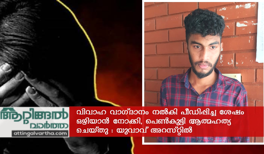 ആറ്റിങ്ങൽ പ്രായപൂർത്തിയാകാത്ത പെൺകുട്ടിയെ വിവാഹ വാഗ്ദാനം നൽകി പീഡിപ്പിച്ച ശേഷം ഒഴിയാൻ നോക്കി, പെൺകുട്ടി ആത്മഹത്യ ചെയ്തു : കിളിമാനൂർ സ്വദേശി അറസ്റ്റിൽ Admin YS November 4, 2019 7:56 pm