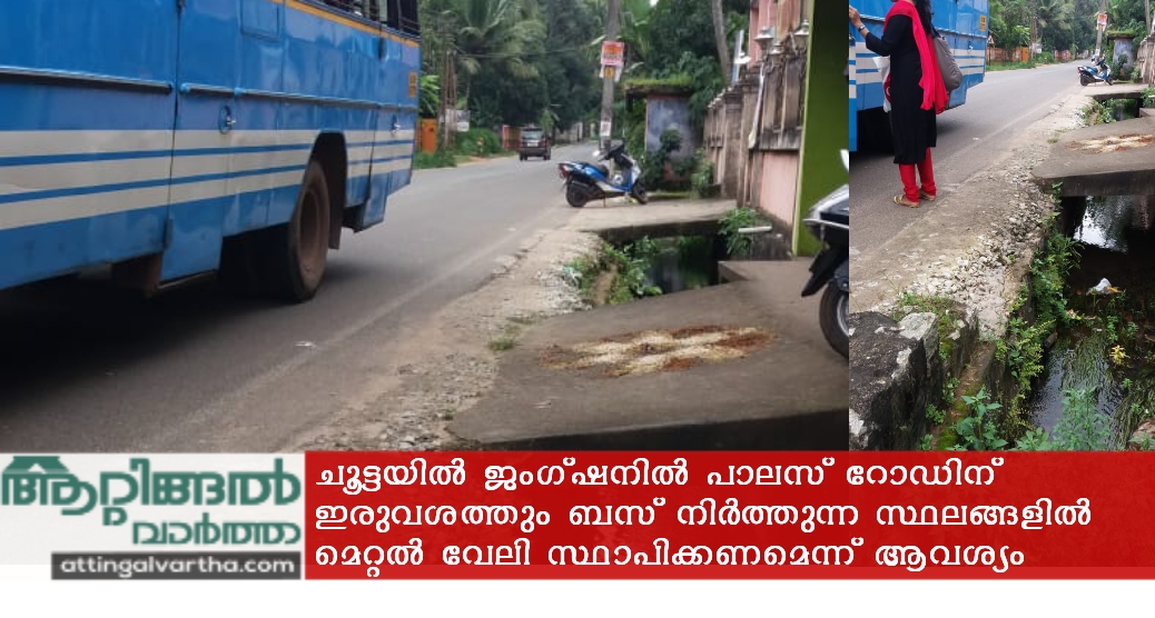 ആറ്റിങ്ങൽ കിളിമാനൂർ ചൂട്ടയിൽ ജംഗ്ഷനിൽ പാലസ് റോഡിന് ഇരുവശത്തും ബസ് നിർത്തുന്ന സ്ഥലങ്ങളിൽ മെറ്റൽ വേലി സ്ഥാപിക്കണമെന്ന് ആവശ്യം Admin YS September 18, 2019 7:08 pm